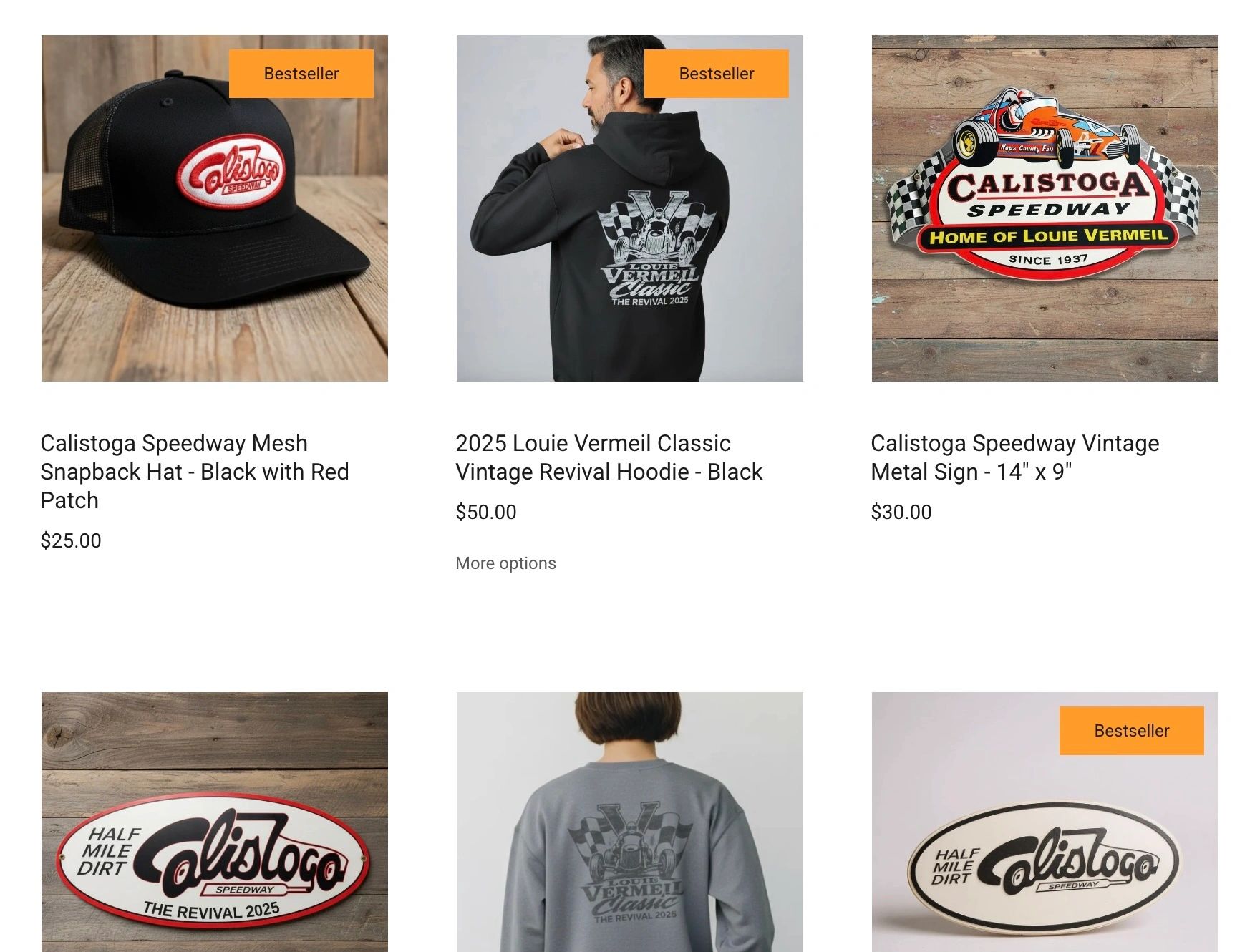 We’re excited to announce that the official Louie Vermeil Classic Calistoga Speedway online merchandise store is open!